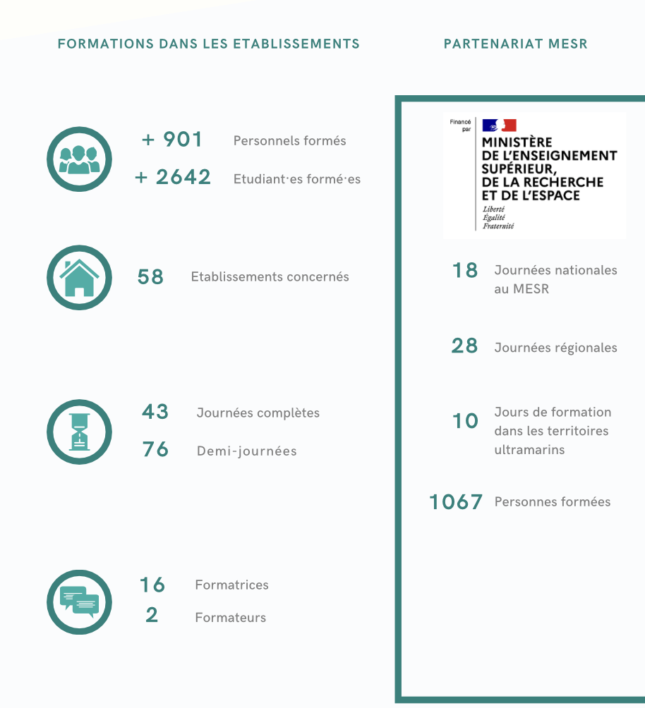 VSS-Formation propose différents modules adaptés en fonction des publics et des besoins : sensibilisations (3h30) et formations (1 ou 2 journées de 7h).